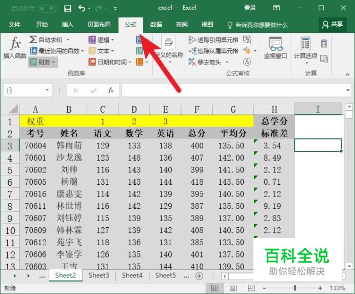 切换到公式标签。