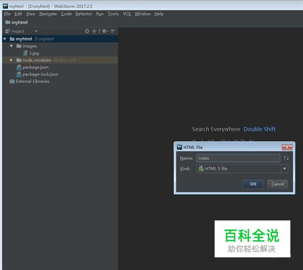 在编译环境(webstorm)右击工程名,新建一个index.html文件