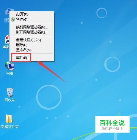在我们的电脑桌面上找到计算机的快捷图标,在该图标上单击鼠标右键,在弹出的右键菜单里找到属性选项,如图所示: