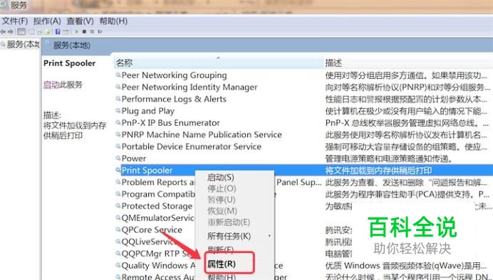 打开服务后,找到一些不必要的服务,将其关闭掉,比如‘Print Spooler", 如果你不需要打印功能,可以右键点击后选择‘属性’