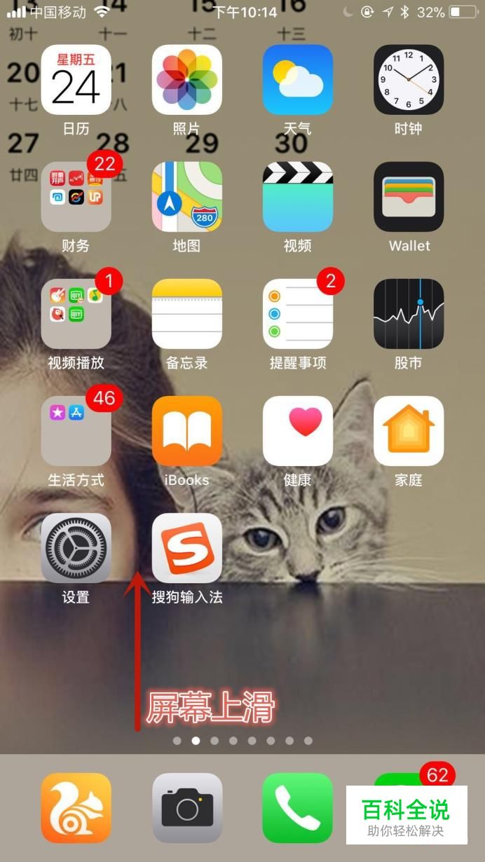 首先将苹果手机屏幕往上滑动,进入副屏,如下图所示。
