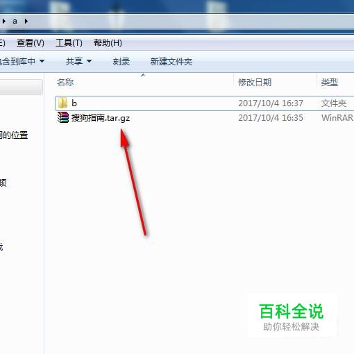 接着来说说怎样把文件解压缩到指定的文件夹。如图,如果是压缩文件,则在文件名前面加上文件夹的路径名即可。如图,我把文件打包压缩到b文件夹下。