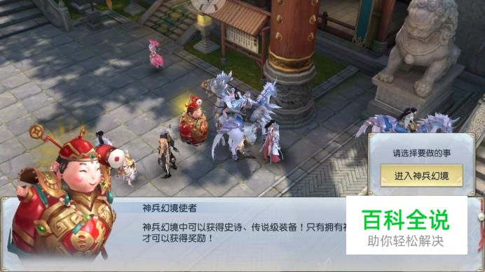 进入游戏主界面,在王城找到“神兵环境使者”进行对话,在弹框中选择“进入神兵幻境”