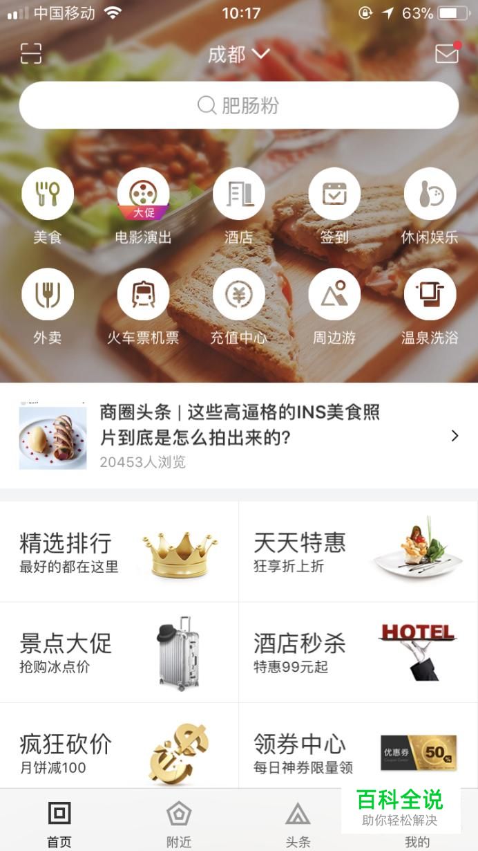 回到主页,点击“美食”。