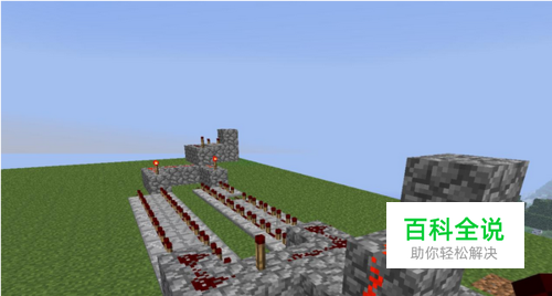 最后把2只开着的红石火把伸延到一个红石火把,把熄灭的红石火把的红石伸延到目标物