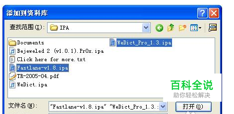 这里选择的是“将文件添加到资料库”这个选项,在弹出的文件选取对话框中,可以安装键盘上的ctrl键或者shift键来选中一个或多个的应用程序文件。选中后,点击“确定”按钮,即可将文件导入到iTunes应用程序资料库中。