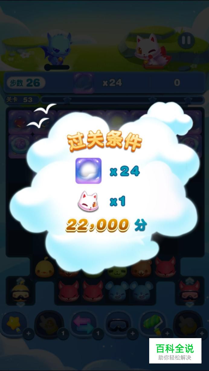 通关条件 (1)消除24个泡泡; (2)杀死BOSS; (3)得分22000以上。