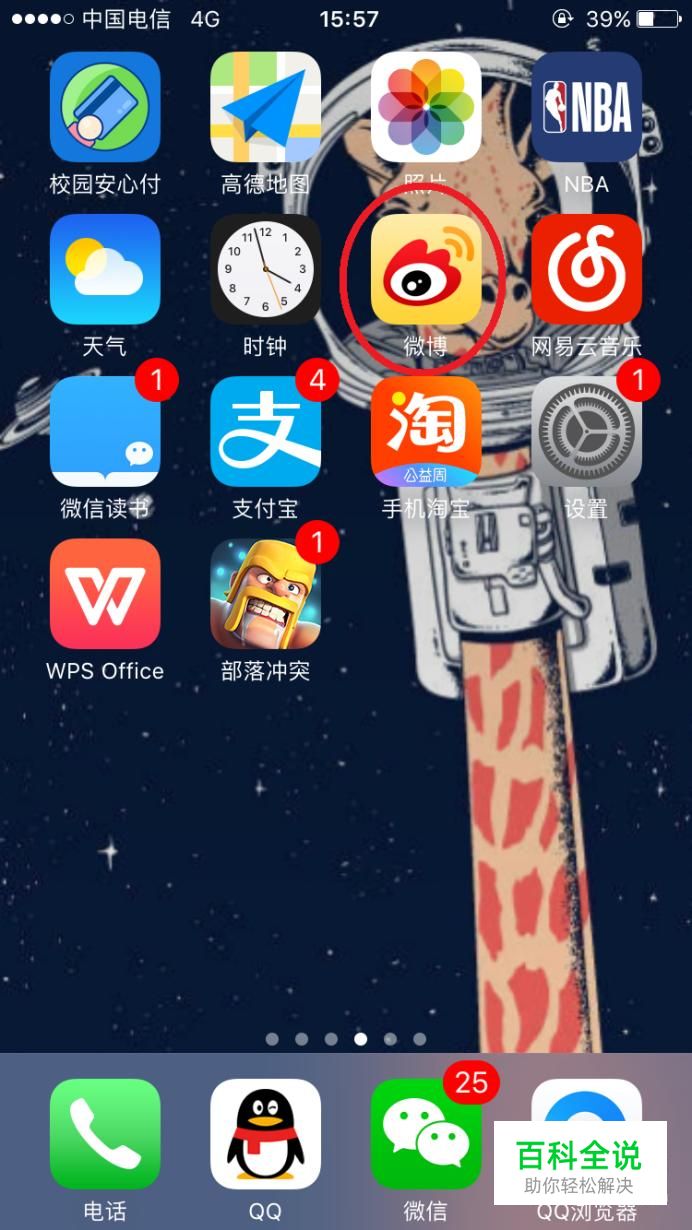 首先,我们拿起手机打开位于桌面上的微博。