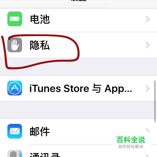 进入之后,把页面下来,找到隐私一栏进入