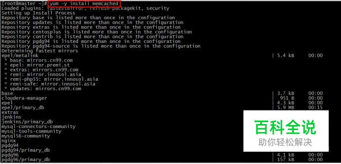 通过yum命令安装Memcached,命令为:yum -y install memcached,该安装过程可能要持续几分钟。安装完成后我们可以在页面看到Complete信息,具体安装过程如下图所示。通过yum既安装了64位的libevent又安装了64位的Memcached,其中libevent是一套跨平台的事件处理接口的封装。
