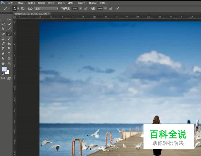 使用画笔工具,创建蒙版快速的将画面像人物以及多余的区域擦除掉完成最终效果。