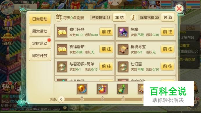 进入定时活动界面,选择科举活动“前往”,每日1次,完成后能获得10点活跃。