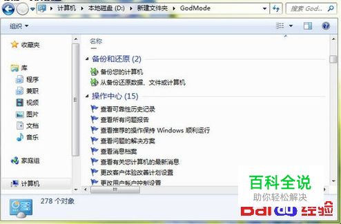 Win7正版系统“上帝模式”简单实用 在Windows 7旗舰版中,创建“上帝模式”非常简单,在桌面或任意文件夹窗口空白处单击鼠标右键,在弹出的快捷菜单中选择“新建→文件夹”,新建一个文件夹,然后将其命名为“GodMode.{ED7BA470-8E54-465E-825C-99712043E01C}”(不包含双引号),你就会发现文件夹名称变成“GodMode”(上帝模式),文件夹图标变成Win7正版系统“控制面板”的图标,这就是大家传说中的“上帝模式”(如图1)。 Windows 7正版系统“上帝模式”很实用,双击创建好的“上帝模式”,大家可以看到里面几乎包含Windows 7正版系统的所有设置,可以非常方便地调用系统配置功能,“一站式”完成系统设置,让系统设置变得简单又高效(如图2)。