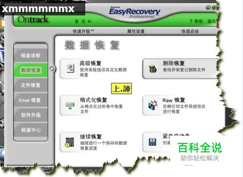 一:EasyRecovery Professional 是一款非常不错的数据恢复软件,Professioanl (专业版) 呵呵。该软件支持的数据恢复方案包括:高级恢复—— 使用高级选项自定义数据恢复 删除恢复—— 查找并恢复已删除的文件 格式化恢复 —— 从格式化过的卷中恢复文件 Raw 恢复 —— 忽略任何文件系统信息进行恢复 继续恢复—— 继续一个保存的数据恢复进度 紧急启动盘 —— 创建自引导紧急启动盘