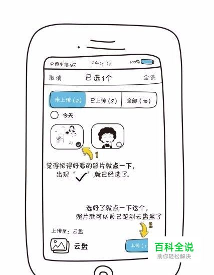 最后点击平时拍好的照片,上传到天翼云盘就好了。备份好的照片会按照原图的拍摄时间和质量,永远的保存在云端,随时打开随时欣赏。