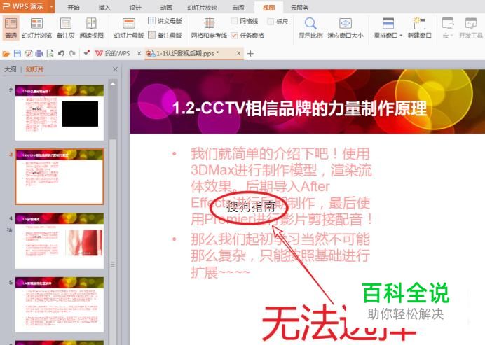 此时我们的水印看不到了,你可以在所以PPT页面下取消水印。