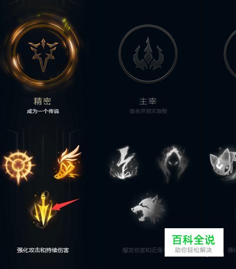 副符文系选择主宰,然后点出猛然冲击和无情猎手。