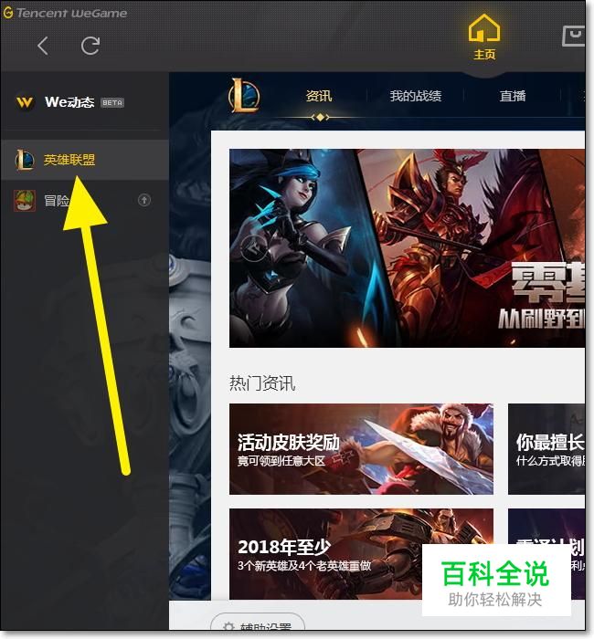 首先我们打开腾讯游戏平台,点击左上角的英雄联盟,登录自己的游戏账号。