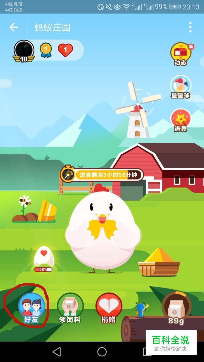 在好友列表中找一个小鸡正在自己的庄园里的好友庄园,点击进入。