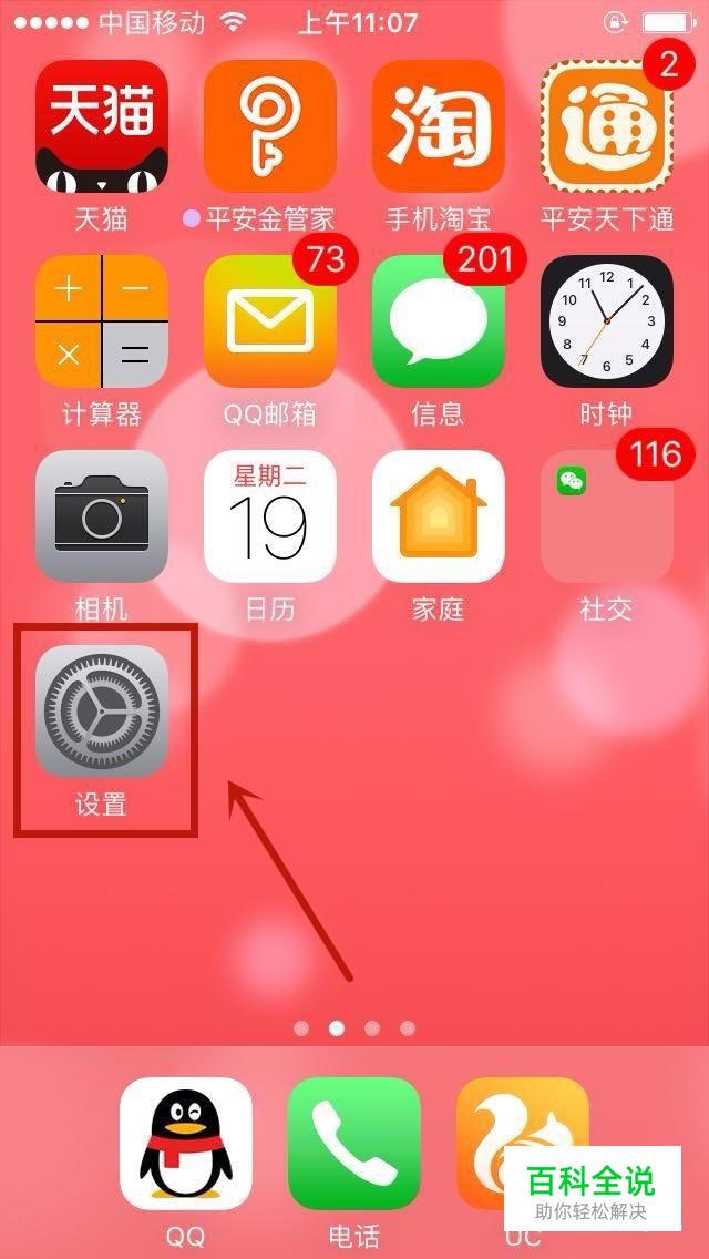首先在手机桌面上找到“设置”小齿轮并点击它,如下图所示。