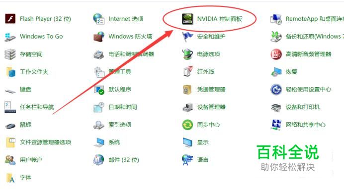 首先打开电脑的控制面板,然后进入NVIDIA控制面板(如图所示)。