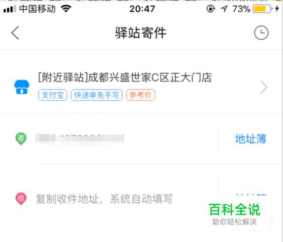 驿站寄件 进入菜鸟包裹App主页,点击上方“驿站寄件”,进入驿站寄件页面,选择距离您最近的驿站,再手动输入您的寄件人的电话号码以及收件人的姓名电话号码以及收件人地址。