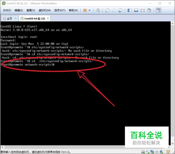 接着输入 cd /etc/sysconfig/network-scripts/ 进入到网络设置中