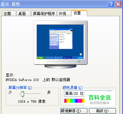 将屏幕分辨率调至1024*768像素 如图示