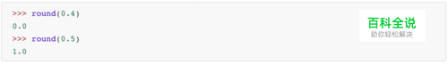 通常,python四舍五入使用内置的round函数就可以了 >>> round(0.4) 0.0 >>> round(0.5) 1.0