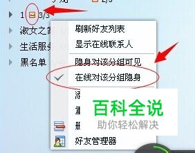 我们需要注意的是,这个设置只能对默认分组之外的分组进行设置。【我的好友】和【生活服务】这两个分组栏不能进行隐身设置,但可以对【我的好友】分组里面的个人进行隐身设置。