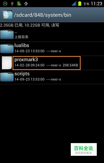 把下载好的SD卡上的文件 sdcard/848OR839/system/bin/proxmark3复制到Android的/system/bin/目录内,并且将其权限改为 [rwxr-xr-x] 把sdcard/848OR839/system/lib/libreadline.so 和 /system/lib/libtermcap.so复制到Android的/system/lib/目录内,并且将其权限改为[rw-r--r--] 如果你需要使用.lua脚本的话,就把/lualibs和/scripts目录放在/system/bin/lualibs/和/system/bin/scritps/目录。