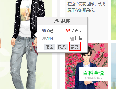 在QQ商城里面随便挑一个要钱滴QQ秀。靓点在“索要”,点击“索要”吧!