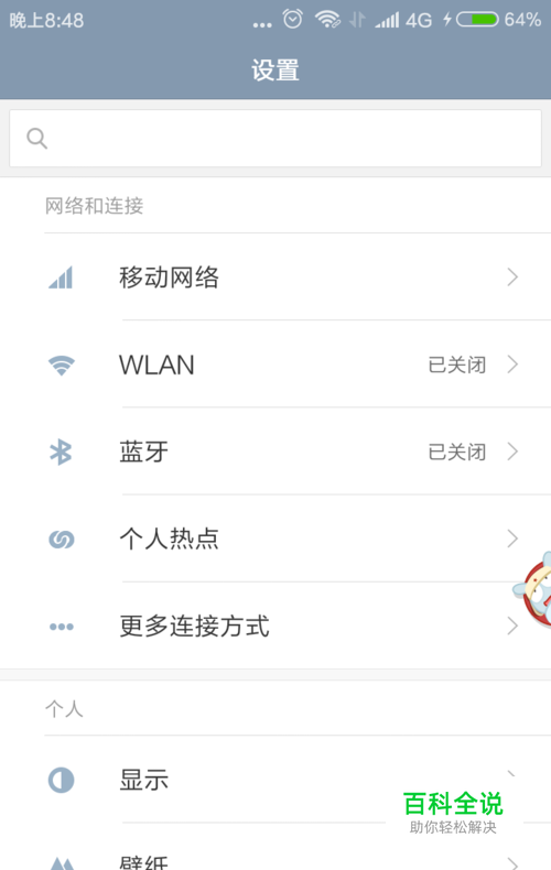 进入手机设置界面,如下图