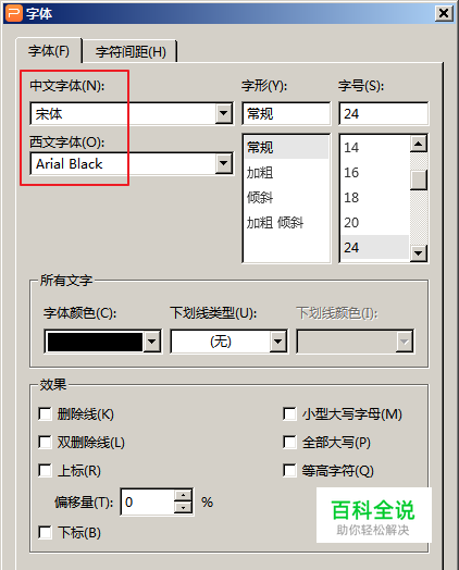 在打开的窗口中,可以看到,中文字体是宋体,而西文字体使用的是中文字体,进一步验证了之前的叙述。