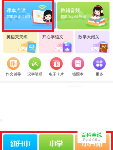 进入‘纳米盒’的起先页面内,在底部的彩格内选学阶,然后在左侧蓝格即是‘点读’的起端处。