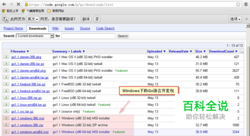 在Go语言的Google代码项目上下载Windows下的Go语言开发包(下载地址见工具)。有zip压缩版和msi安装版两个按本下载。(这里使用msi安装版,比较方便)
