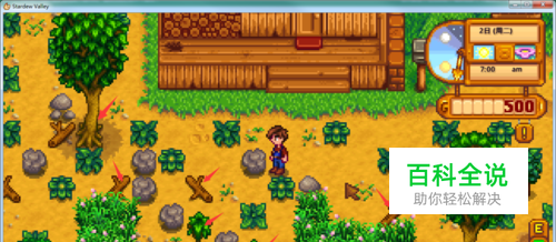 先选中工具“斧头”,然后到农场中去伐木。砍伐树木(大树木头多,小树木头少),地上的树干和树桩都能获得木材。