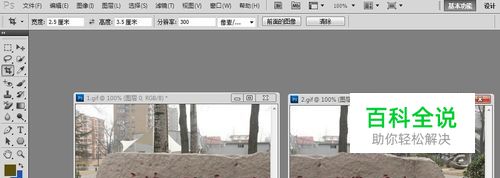 将另外1张图片拖入,并重合对齐好,选择矩形工具,框选连接处的重合部分,按Delete删除,并重新裁切好。如下图所示。