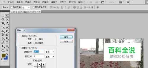 注意图像模式,如果不是GRB模式,改为RGB模式。点击图像-画布大小-在新建大小中输入宽度值,值参考上方的值,高度不要输入,选择画布新建方式,如下图所示。