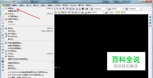 首先我们打开CAD软件并找到左上角的文件选项,如图所示;