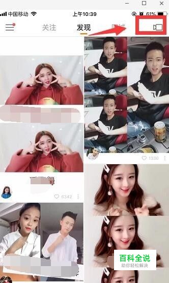 登录快手,点击录视频的小摄像机。