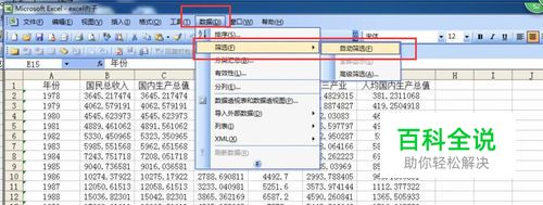 此时,会弹出一个“自定义自动筛选方式”的对话框,根据自己需要填写内容,如小编想要筛选出年份为1978年的GDP数据,就选择年份“等于”——“1978”,如果想选择1978年后的,可选择“大于”