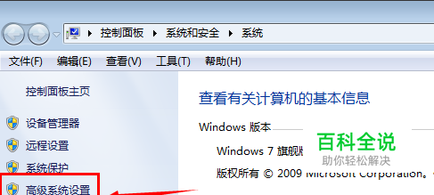 出现计算机属性对话框中,找到左边部分 “高级系统设置”如下图箭头位置