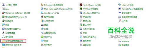 首先(第一种)打开控制面板。 选择文件资源管理器选项。 可以看到未修改之前,无法显示扩展名和隐藏的文件及文件夹。