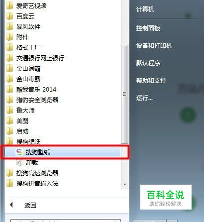 确保电脑中安装了搜狗壁纸,【开始】-【所有程序】-【搜狗壁纸】将其打开