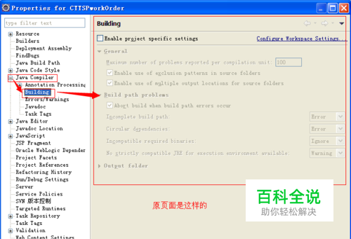 在打开的属性设置面板中左边栏中找到“Java Compiler”-->Building弹出框如下图: