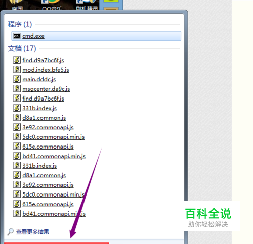 这里在设置IP地址之前,我们先要获取我们自己本地的IP地址。如图,我们点击菜单键,然后在搜索栏里面输入【CMD】,调出命令行。