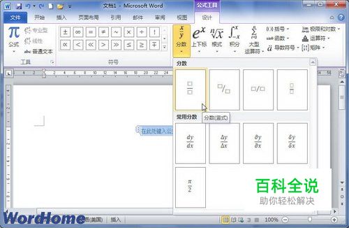 在Word2010中创建分数公式