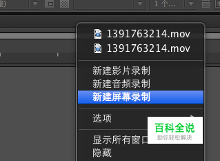 第二,打开软件并且右键点击,弹出菜单,选择“新建屏幕录制”