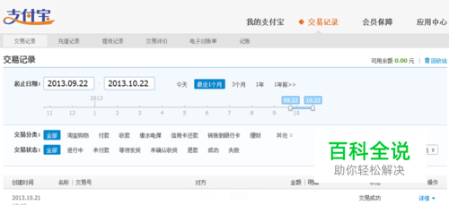 然后就可以在交易记录页面,查询自己的交易记录了。可以按时间,按分类,查询页面的查询方式有很多种,方便我们对交易记录的查询。